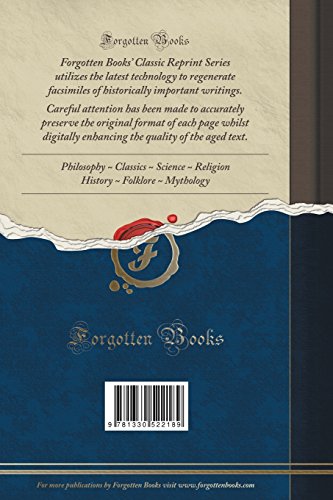 This book is a reproduction of an important historical work. Forgotten Books uses state-of-the-art technology to digitally reconstruct the work, preserving the original format whilst repairing imperfections present in the aged copy. In rare cases, an imperfection in the original, such as a blemish or missing page, may be replicated in our edition. We do, however, repair the vast majority of imperfections successfully; any imperfections that remain are intentionally left to preserve the state of such historical works.
