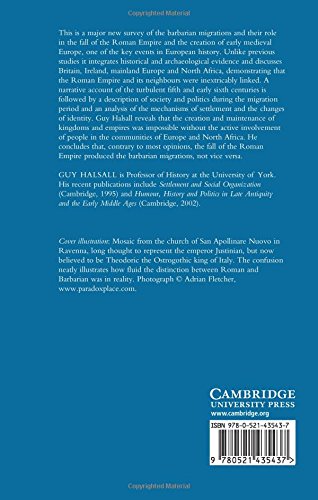 This is a major survey of the barbarian migrations and their role in the fall of the Roman Empire and the creation of early medieval Europe, one of the key events in European history. Unlike previous studies it integrates historical and archaeological evidence and discusses Britain, Ireland, mainland Europe and North Africa, demonstrating that the Roman Empire and its neighbours were inextricably linked. A narrative account of the turbulent fifth and early sixth centuries is followed by a description of society and politics during the migration period and an analysis of the mechanisms of settlement and the changes of identity. Guy Halsall reveals that the creation and maintenance of kingdoms and empires was impossible without the active involvement of people in the communities of Europe and North Africa. He concludes that, contrary to most opinions, the fall of the Roman Empire produced the barbarian migrations, not vice versa.