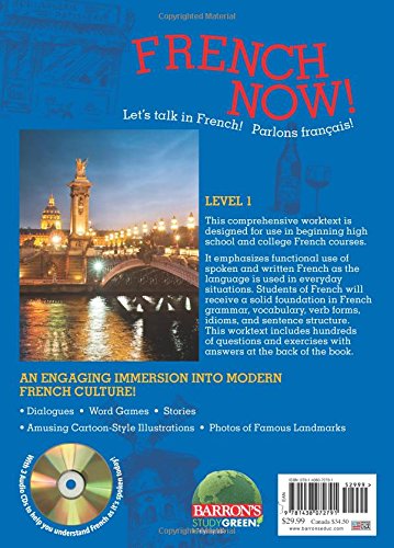 The updated fifth edition of this high-school level textbook emphasizes oral proficiency while also instructing in written French composition, reading proficiency, listening comprehension, grammar, vocabulary, and the use of French idioms. Updated vocabulary reflects current technology and contemporary social and idiomatic expressions. Student-friendly features include dialogues, songs, word puzzles, and insights into French customs, everyday life, and culture. Practice and review questions appear throughout the text, with answers in a set of perforated pages at the back of the book. A set of three audio compact discs are enclosed with the book. The audio material complements the written text, presenting approximately three hours of coaching in French pronunciation and immersion in conversational French. Photos and illustrations throughout the book.