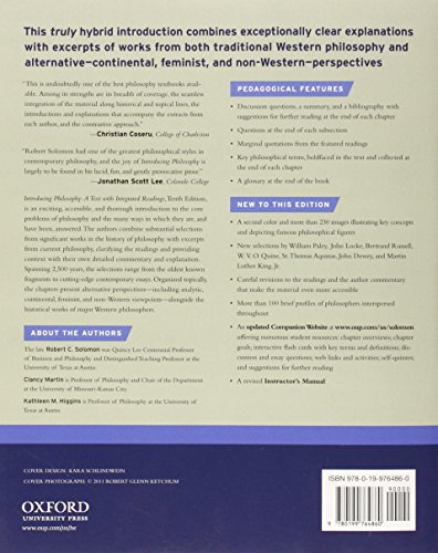 Introducing Philosophy: A Text with Integrated Readings, Tenth Edition, is an exciting, accessible, and thorough introduction to the core problems of philosophy and the many ways in which they are, and have been, answered. The authors combine substantial selections from significant works in the history of philosophy with excerpts from current philosophy, clarifying the readings and providing context with their own detailed commentary and explanation. Spanning 2,500 years, the selections range from the oldest known fragments to cutting-edge contemporary essays. Organized topically, the chapters present alternative perspectives--including analytic, continental, feminist, and non-Western viewpoints--alongside the historical works of major Western philosophers.
