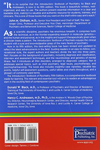 As a scientific discipline, psychiatry has enormous breadth. It comprises both the technical, as in the frontier-expanding research in molecular genetics and the human and personal, as in the insights and support therapeutically given when a clinician treats a patient. The Introductory Textbook of Psychiatry equips the clinical student with a sure and knowledgeable grasp of the many facets of psychiatry. Now in its fifth edition, this best-selling book has been revised and updated to reflect the latest advancements in the field. Guiding readers in an easy-to-follow, conversational style, the expert authors and teachers divide the text into three parts: Part I focuses on the background of psychiatry, including diagnosis and classification, interview and assessment techniques, and the neurobiology and genetics of mental illness. Part II introduces all DSM disorders, arranged by diagnostic category. Part III addresses special topics, such as legal issues, child psychiatry, psychotherapy, and psychopharmacology. The book also includes insightful case vignettes, valuable key points, helpful self-assessment questions, useful tables and charts throughout, and a glossary of commonly used terms. The Introductory Textbook of Psychiatry, Fifth Edition, is a comprehensive textbook made for learning. This relevant and essential tool will give its readers an advantageous start in the exciting field of contemporary psychiatry.