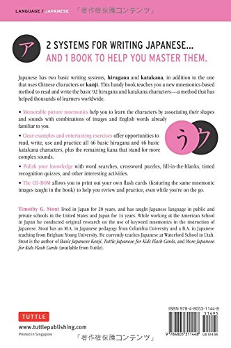 The Japanese language has two basic writing systems, hiragana and katakana, in addition to the one that uses Chinese characters or Kanji. This handy book teaches you a new mnemonics–based method to read and write the basic 92 hiragana and katakana characters. Along with its sister book: Japanese Kanji for Beginners it provides a complete introduction to written Japanese.