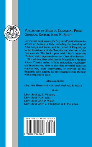 Livy's first book covers the 'mythical' period of Rome, from the arrival of Aeneas in Italy, including the founding of Alba Longa and Rome, the lives of Romulus and Remus, and the period of Kingship up to the banishment of the last of the seven kings, Tarquinus Superbus and the election of the first consuls. The book opens with Livy's important Preface which explains his rationale for writing this history.