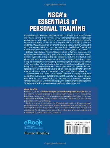 Comprehensive and research based, the second edition of NSCA's Essentials of Personal Training is the resource to rely on for personal training information and guidance. With state-of-the-art knowledge regarding applied aspects of personal training as well as clear explanations of supporting scientific evidence, NSCA’s Essentials of Personal Training, Second Edition, is also the authoritative preparation text for those preparing for the National Strength and Conditioning Association’s Certified Personal Trainer (NSCA-CPT) exam.