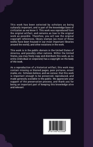 This work has been selected by scholars as being culturally important, and is part of the knowledge base of civilization as we know it. This work was reproduced from the original artifact, and remains as true to the original work as possible. Therefore, you will see the original copyright references, library stamps (as most of these works have been housed in our most important libraries around the world), and other notations in the work.