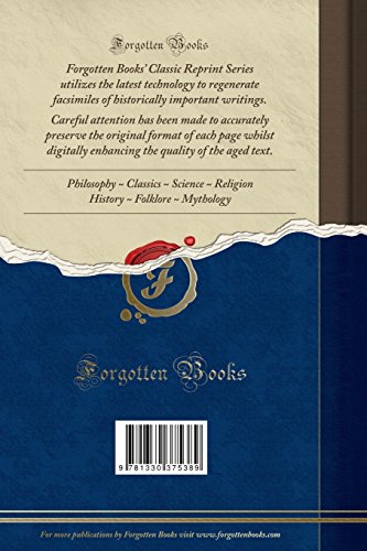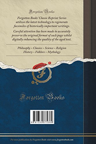 This book is a reproduction of an important historical work. Forgotten Books uses state-of-the-art technology to digitally reconstruct the work, preserving the original format whilst repairing imperfections present in the aged copy. In rare cases, an imperfection in the original, such as a blemish or missing page, may be replicated in our edition. We do, however, repair the vast majority of imperfections successfully; any imperfections that remain are intentionally left to preserve the state of such historical works.