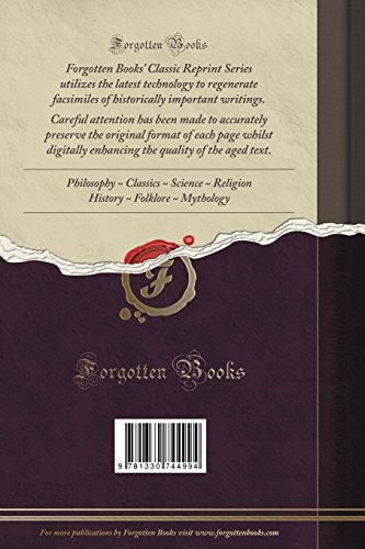 This book is a reproduction of an important historical work. Forgotten Books uses state-of-the-art technology to digitally reconstruct the work, preserving the original format whilst repairing imperfections present in the aged copy. In rare cases, an imperfection in the original, such as a blemish or missing page, may be replicated in our edition. We do, however, repair the vast majority of imperfections successfully; any imperfections that remain are intentionally left to preserve the state of such historical works.