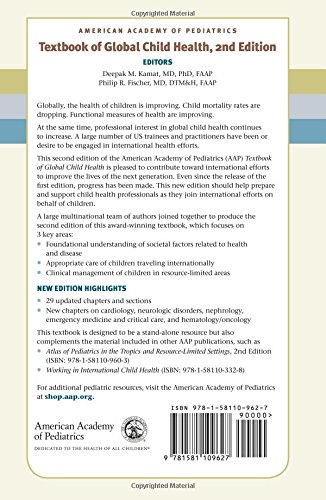 The second edition of the American Academy of Pediatrics Textbook of Global Child Health is pleased to contribute toward international efforts to improve the lives of the next generation. This new edition will help prepare and support child health professionals as they join international efforts on behalf of children.