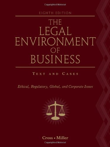 Comprehensive, authoritative, and cutting-edge, THE LEGAL ENVIRONMENT OF BUSINESS combines a classic "black letter law" approach with an interesting and accessible reader-friendly format. The cases, content, and features of the exciting new Eighth Edition have been thoroughly updated to represent the latest developments in the business law environment. An excellent assortment of included cases ranges from precedent-setting landmarks to important recent decisions, and ethical, global, and corporate themes are integrated throughout. In addition, numerous features and exercises help you master key concepts and apply what you've learned to real-world issues, and the book offers an unmatched range of support resources--including innovative online review tools.