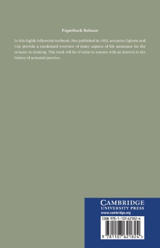 In this highly influential textbook, first published in 1952, actuaries Ogborn and Coe provide a condensed overview of many aspects of life assurance for the actuary-in-training. This book will be of value to anyone with an interest in the history of actuarial practice.