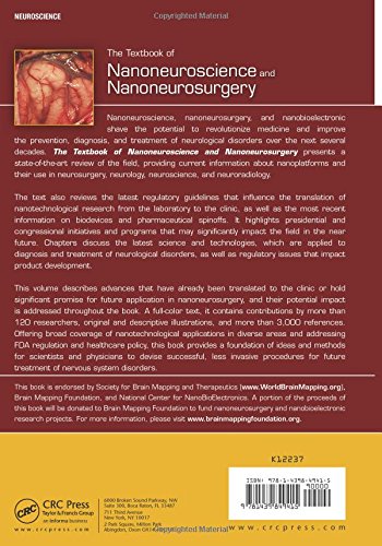Nanoneuroscience, nanoneurosurgery, and nanobioelectronics have the potential to revolutionize medicine and improve the prevention, diagnosis, and treatment of neurological disorders over the next 10-20 years. The Textbook of Nanoneuroscience and Nanoneurosurgery presents a state-of-the-art review of the field, providing current information about nanoplatforms and their use in neurosurgery, neurology, neuroscience, and neuroradiology.