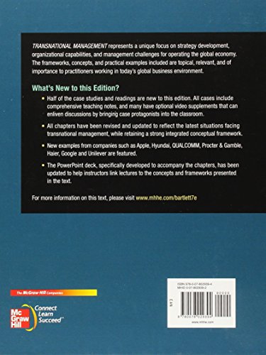 Transnational Management focuses on the management challenges associated with developing strategies and managing the operations of companies whose activities stretch across national boundaries. The purpose of this book is to provide a conceptual framework showing the interplay between the multinational corporation, the countries in which it does business, and the competitive environment in which it operates. Through text narrative, cases, and readings, the authors skillfully examine the development of strategy, organizational capabilities, and management challenges for operating in the global economy.